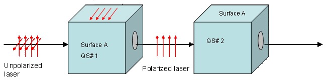 在没有双头Q开关之前,为了有效地关断高功率激光束,通常使用两个C模式Q开关(比如QS27-4C-B),它们相互正交地放在激光谐振腔中。由于C模式开关能有效地关断偏振激光束,这样第一个Q开关有效地关断一个方向的光,第二个Q开关有效地关断另一个方向的光,但缺点是两个Q开关放在谐振腔中需要更大的位置空间,所以谐振腔一般都比较长。双头Q开关是将原先的两个Q开关集成为一个Q开关,有效地减少了体积,与之对应的也要使用双路Q开关电源(Q驱动器),一个电源输出两路射频去驱动双头Q开关。