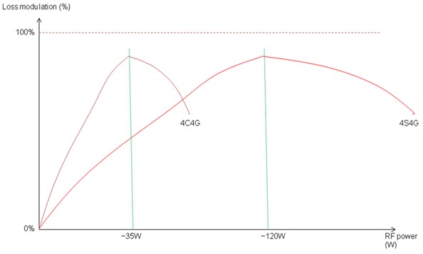 | 调制损耗 | 在射频输入功率50W时 >  70%, 在射频输入功率100W时 > 85% | ~75% |