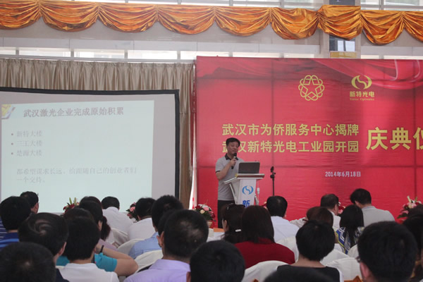 6月18日上午,在成功举行武汉市为侨服务中心揭牌暨武汉千亿qy88国际官网入口工业园开园仪式后,武汉·中国光谷激光行业协会、湖北省暨武汉激光学会、武汉海外高层次人才联谊会和武汉千亿qy88国际官网入口技术有限公司联合举行“武汉激光产业发展论坛”。武汉?中国光谷激光行业协会会长朱晓教授、材料成形与模具技术国家重点实验室魏青松副教授、武汉千亿qy88国际官网入口技术有限公司董事长、国家千人计划专家陈义红博士先后发表了武汉激光产业发展的主要问题与对策、激光再制造的发展方向和激光精密加工的产业链建设的主题演讲。随后,常州市天宁区委常委、组织部长蔡旭介绍了天宁区有关人才和科技政策。来自全国各地专家、学者、企业家近200人参加了论坛。