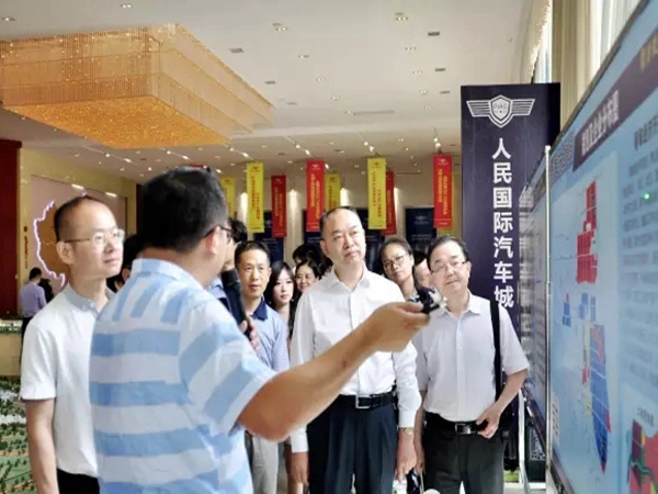 考察团在蔡甸区领导的陪同下分别参观了蔡甸经济开发区人民国际汽车城、常福工业园、花博汇以及中法武汉生态示范城规划展示馆,并在蔡甸区政府召开了座谈会。