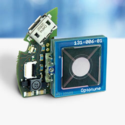 2011年,我们是第一个将应用于光学领域的电活性聚合材料(EAP)推向市场的公司。它的基体是有弹性的薄膜。其中心带有一个扩散片,四周带有四个电极。电极在90°相移时启动扩散片沿x轴和y轴方向运动,形成环形振动。因其体积小、自重轻、无噪音、无振动,使得这项技术非常适用于小型手持设备。