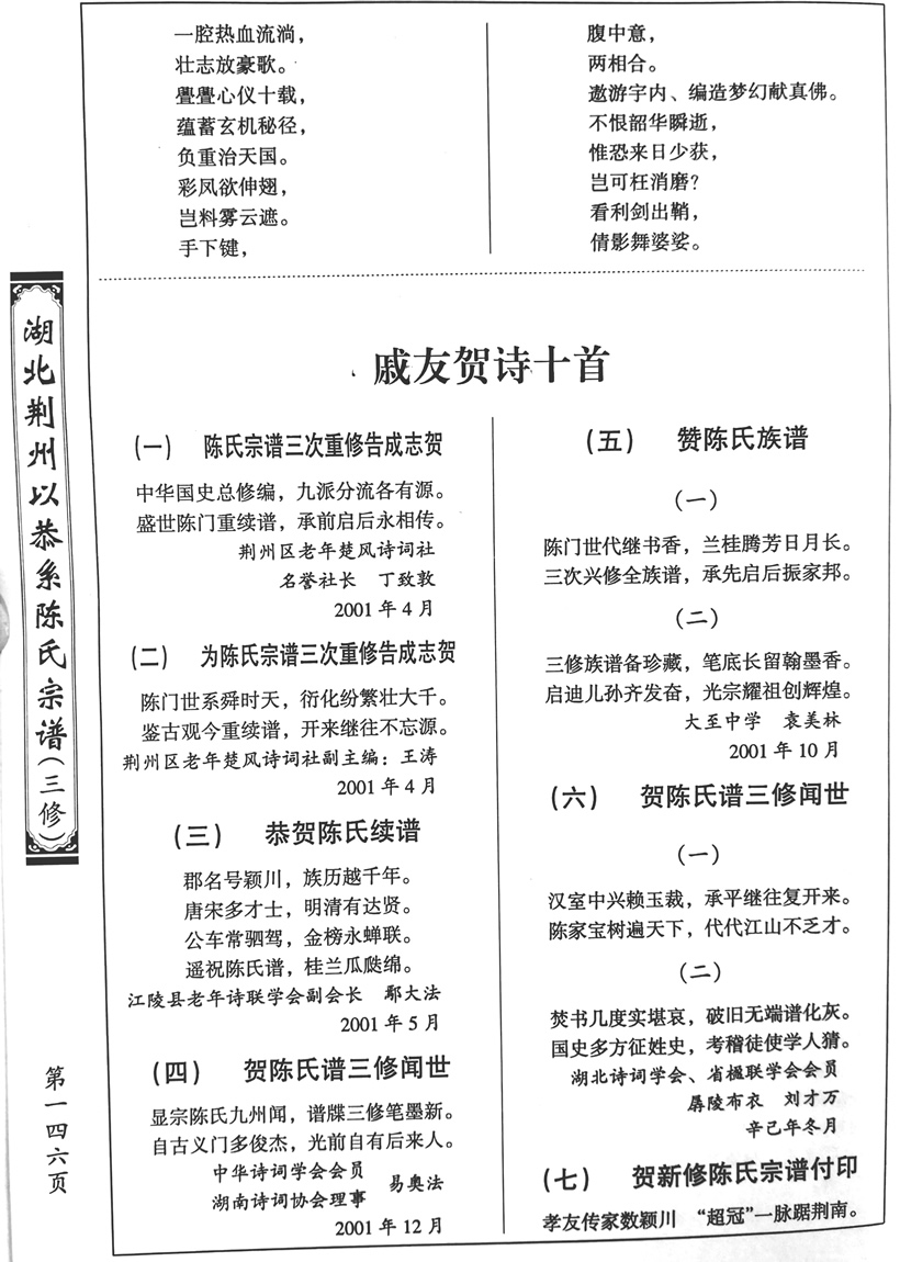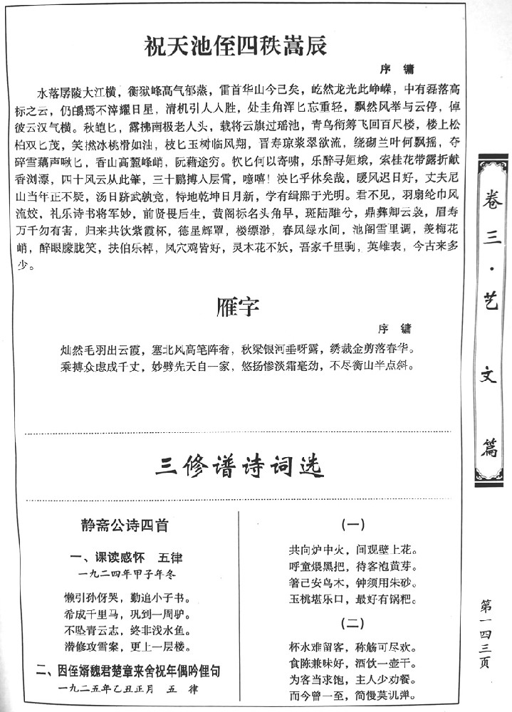 【三修谱】诗词选(143-147页) 作者:超级管理员 来源:本站 发布日期:2018-02-02 关注:634 上一篇:【三修谱】艺文、康熙皇帝圣诏、寿文、赞文(126-143页) 下一篇:【三修谱】楹联选(148-149页)