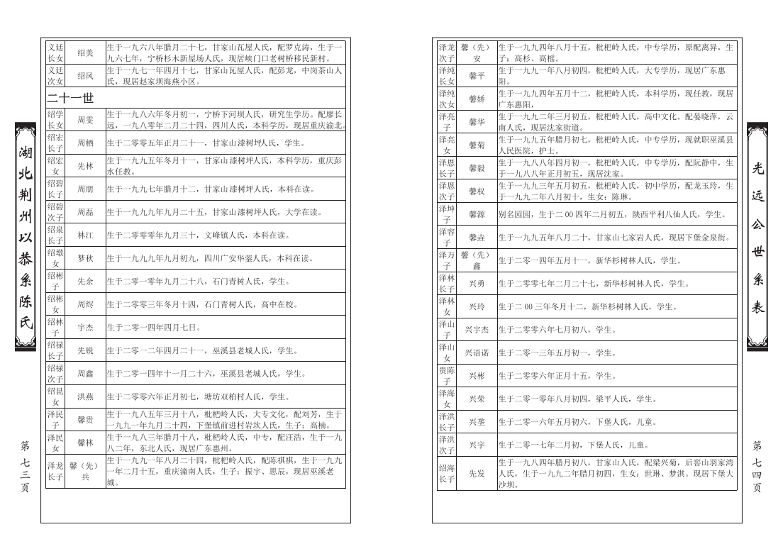 • 6. 以恭系巫溪支谱-泽柱公世系图、世系表