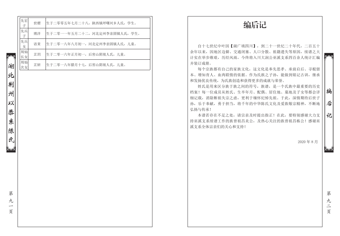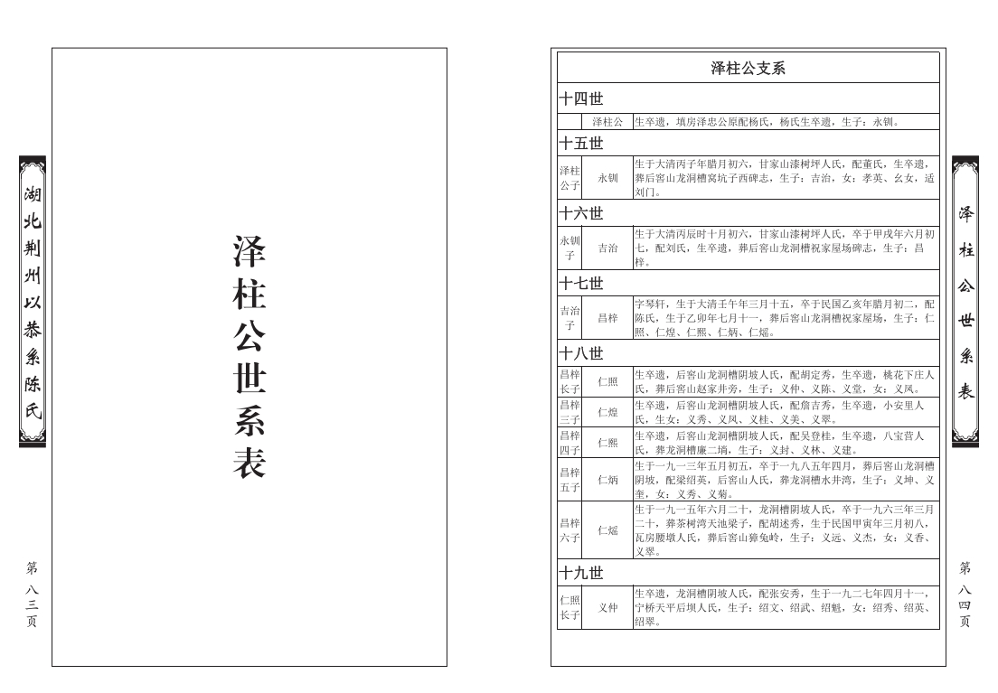 6. 以恭系巫溪支谱-泽柱公世系图、世系表