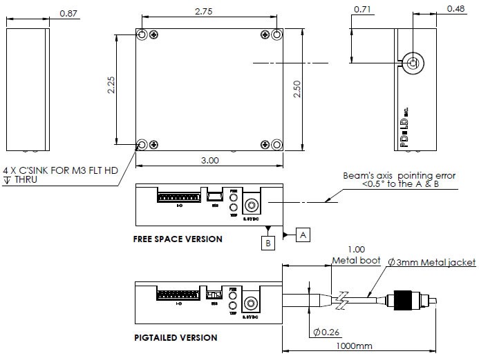 | 调制频率 | 50~10kHz | 红光指示输出功率 | 0.25~1mW |