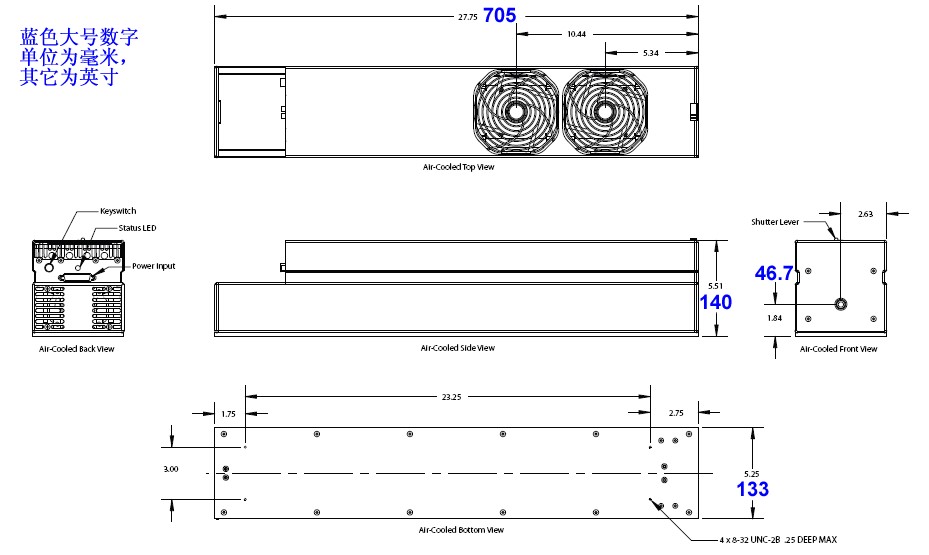 | 外形尺寸 (LxWxH, 标准型风冷) | 705x133x140mm | 705x133x140mm | 864x133x138mm | 865x250x192mm |
