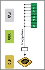 DMD掩码:DMD掩码是一个单色位图,在帧显示期间覆盖ALP帧。受影响的位置固定在DMD上。
